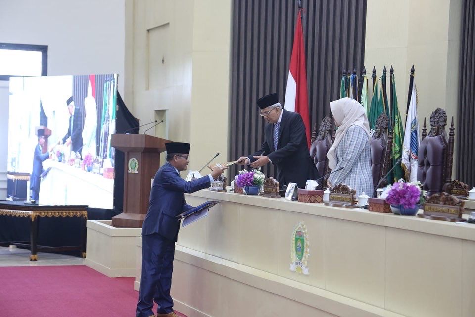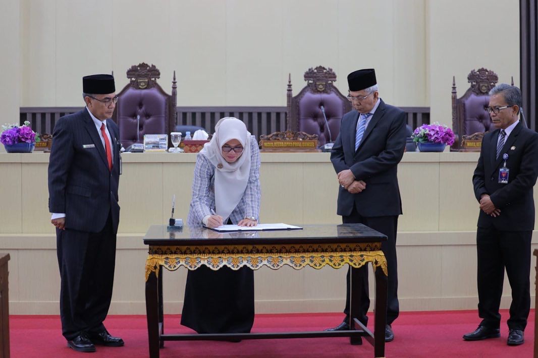 Usai mendengarkan laporan hasil reses ditandatangani oleh Wakil Ketua DPRD Sumsel, Kartika Sandra Desi disaksikan Wagub Mawardi Yahya.*