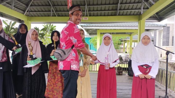 Ketua FPL Pasaman Barat Denni Meilizon saat menyerahkan hadiah kepada pemenang Lomba Baca Puisi dan Bercerita antar Pelajar se-Kabupaten Pasaman Barat Tahun 2022.