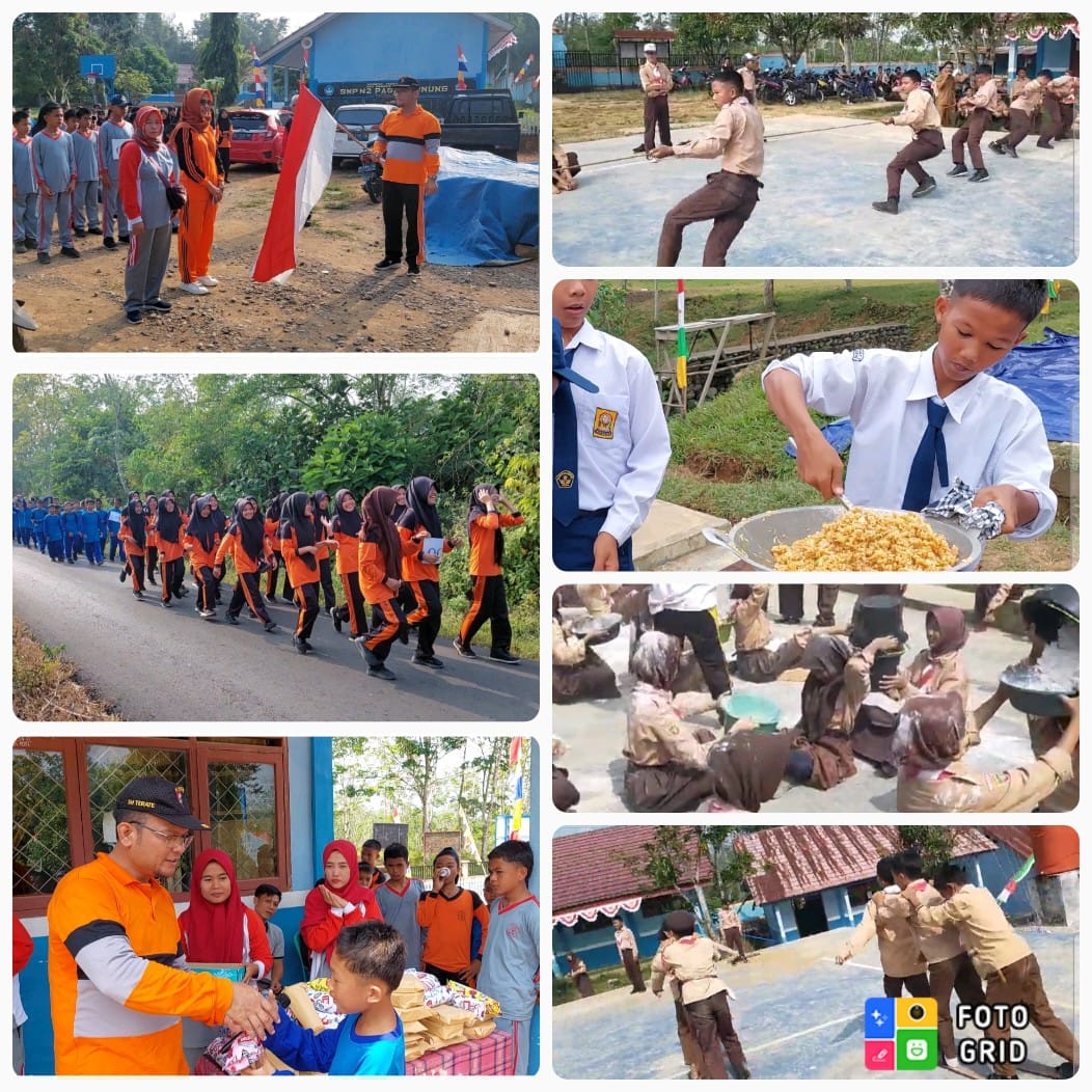 TABLOID-DESA.COM. PAGAR GUNUNG LAHAT –Memeriahkan HUT RI ke-78, SMPN 2 Pagar Gunung Kabupaten Lahat Provinsi Sumsel mengadakan berbagai macam kegiatan perlombaan, diantaranya lomba tarik tambang, lompat karung, estapet tepung, masak nasi goreng, bakiak, dan jalan santai berhadiah.