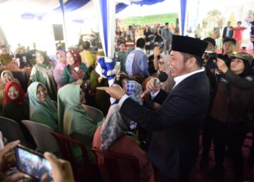 Kegembiraan warga terlihat saat Gubernur Sumsel H. Herman Deru menyerahkan ambulans CSR dari Bank Pembangunan Daerah (BPD) SumselBabel, Sabtu sore (28/1).