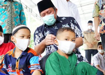 Dalam safari Jumatnya kali ini Herman Deru juga membagikan masker kepada para jemaah. Bahkan Gubernur tampak memasangkan masker pada kalangan jemaah anak-anak.
