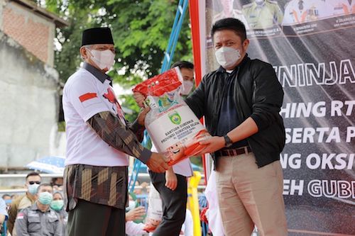 Tabloid-DESA.com LUBUK LINGGAU- Tak hanya meninjau destinasi Kampung Ulung, dalam kunkernya di Kota Lubuk Linggau, Sabtu (25/9) Gubernur Sumsel H. Herman Deru juga menyerahkan Bantuan Sosial kepada Masyarakat Terdampak Covid 19 dan Bantuan Oksigen di Kelurahan Ulung Surung Kecamatan LubukLinggau Utara II Kota Lubuk Linggau.