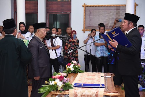 Tabloid-DESA.com PALEMBANG – Mengawali agenda kerjanya, Rabu (29/1) pagi, Gubernur Sumsel H.Herman Deru melantik sekaligus mengambil sumpah jabatan Kepala Perwakilan BKKBN Provinsi Sumsel, Novian Andusti, di Griya Agung. Kepada Kepala BKKBN yang baru itu, Gubernur HD berpesan agar sering-sering terjun ke lapangan langsung.