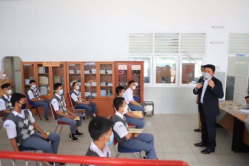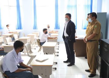 Dalam peninjauan tersebut, Herman Deru memantau langsung kegiatan belajar mengajar yang tengah dilakukan. Sedikitnya, dalam satu kelas hanya di isi 10 sampai 20 orang siswa dengan prokes ketat.