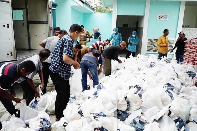 Bantuan paketnsembako disalurkan kepasa 700 kepala keluarga (KK diwali dengan pembagian secara sibolis yang dipusatkan di Jalan Putri Dayang Rindu, Kelurahan Keramasan, Kecamatan Kertapati Palembang, Senin (26/12) siang.
