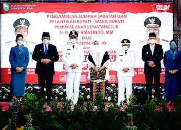 Tabloid-DESA.com PALEMBANG- Gubernur Sumsel H. Herman Deru atas nama Presiden melantik pasangan Ir H. Heri Amalindo MM sebagai Bupati dan Drs Soemarjono sebagai Wakil Bupati Penukal Abab Lematang Ilir (PALI) bertempat di Griya Agung Palembang, Jumat (18/6) petang.