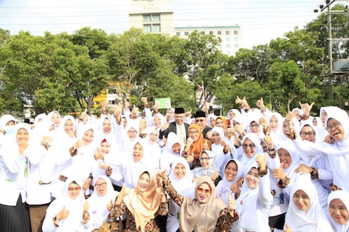 Pada kesempatan itu juga Wagub Mawardi menyerahkan penghargaan kepada karyawan RSI Siti Khadijah yang telah mendedikasikan dirinya bekerja dan berkarya di RSI Siti Khadijah.