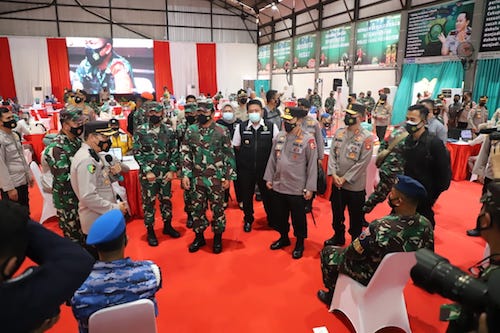 Panglima TNI Marsekal TNI Hadi Tjahjanto disela-sela kegiatan pemberian vaksin ini mengatakan, vaksinasi yang dilakukan merupakan tahap-2 yang diperuntukan bagi prajurit TNI/Polri yang telah dimulai di beberapa tempat sejak tanggal 1 Maret 2021 lalu.